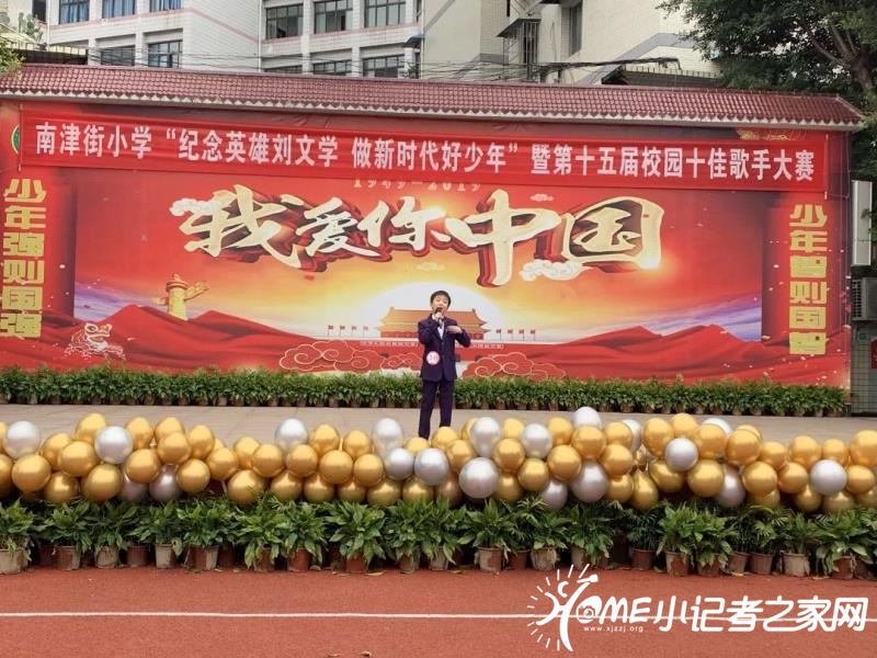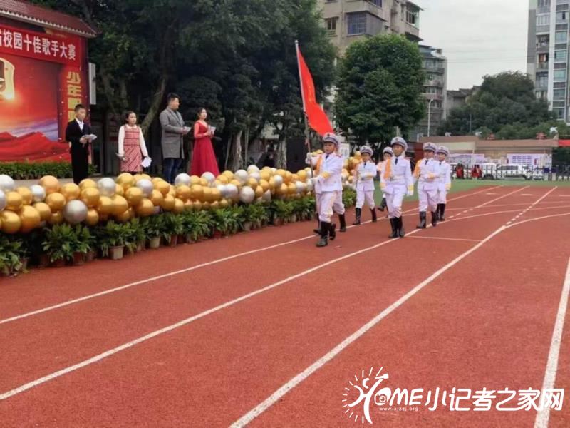 近日,南津街小学开展了纪念刘文学十佳歌手大赛,首先出队旗,护旗手英姿飒爽地像升旗台走去!