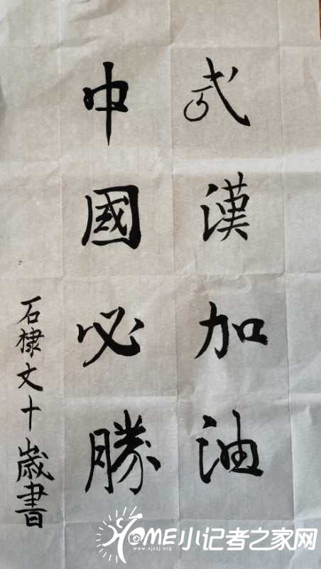石棣文的书法作品上面着“武汉加油,中国必胜!为武汉、为国家加油。