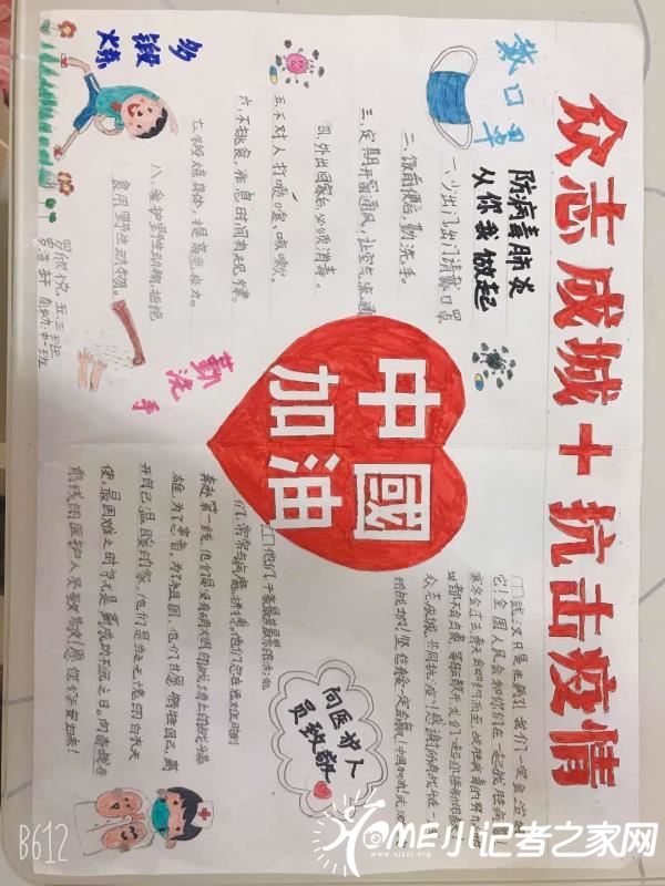 同学们制作防疫知识手抄报,上面不仅写了武汉加油向医护人员致敬的字样,而且还教了大家怎么佩戴口罩,怎么勤洗手不揉眼。除此之外,如果出门的话就要佩戴护目镜,口罩少跟别人说话少接触。如果要打喷嚏咳嗽一定要拿纸巾包住或者拿袖子包住,减少飞沫传播气溶胶传播的机会。作者 : 学校 : 合川区南津街小学 用户类 : 小记者 发布时间 : 2020年02月13日