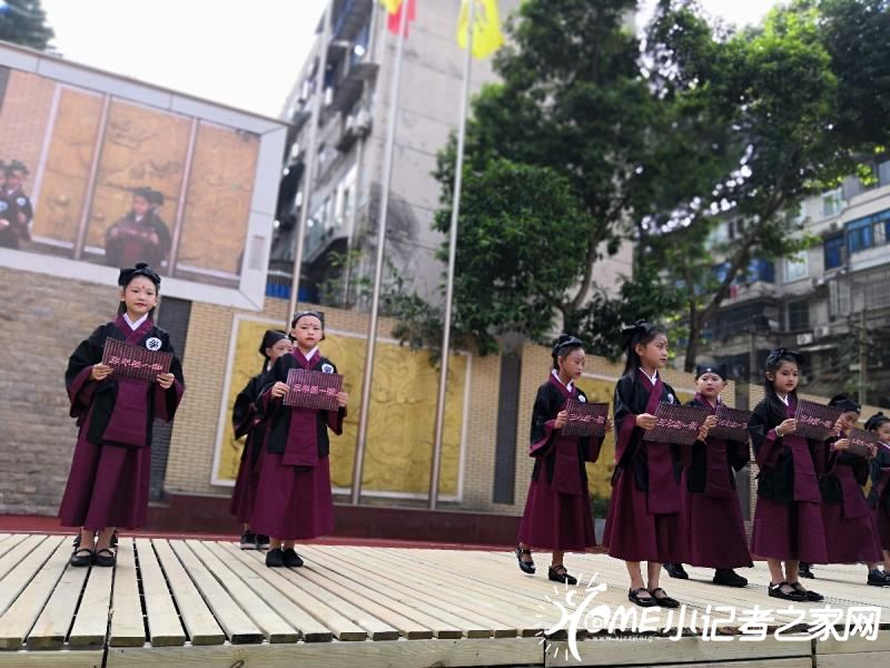 三年级一班同学穿汉服表演并带领大家习汉礼。